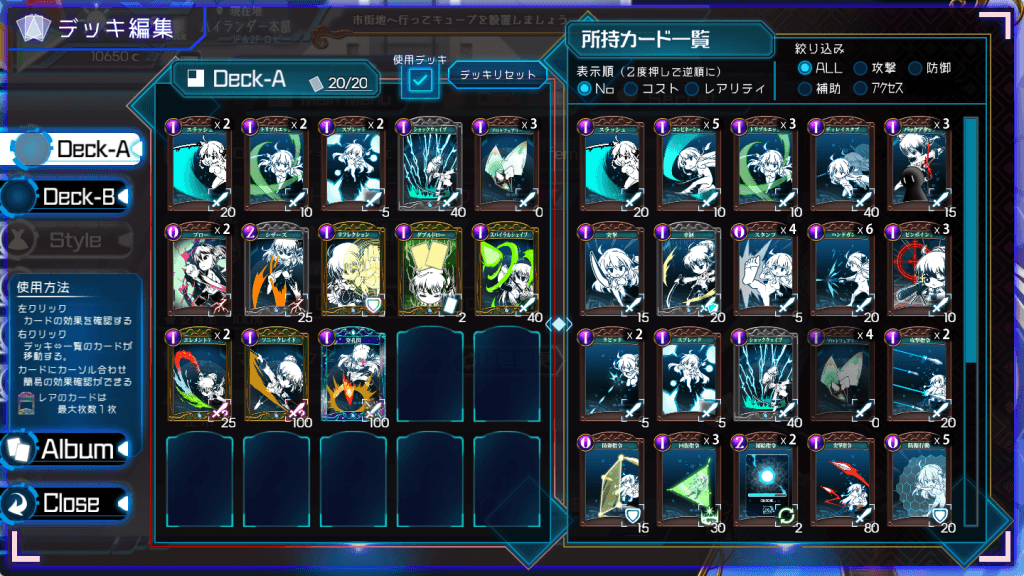 1ターンに使えるコスト上限は決まっており、効率よくカードを使うことで戦闘を有利に進めていきます。